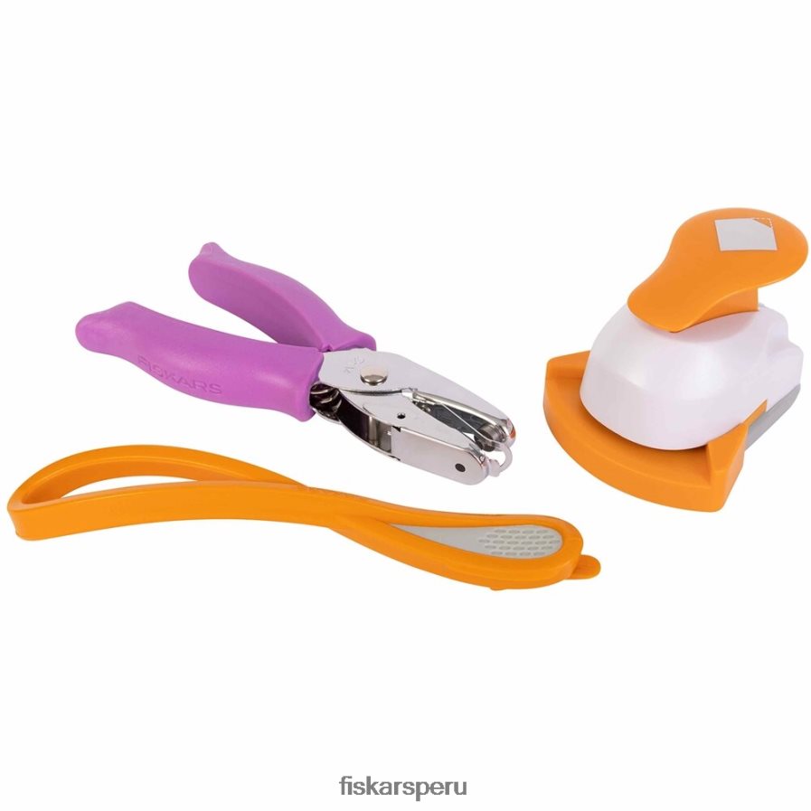 - el juego de envoltura de regalos de fiskars incluye tres herramientas para envolver bellamente regalos y obsequios: cortador de papel de regalo, perforador de palanca en esquinas y perforador manual de agarre suave
