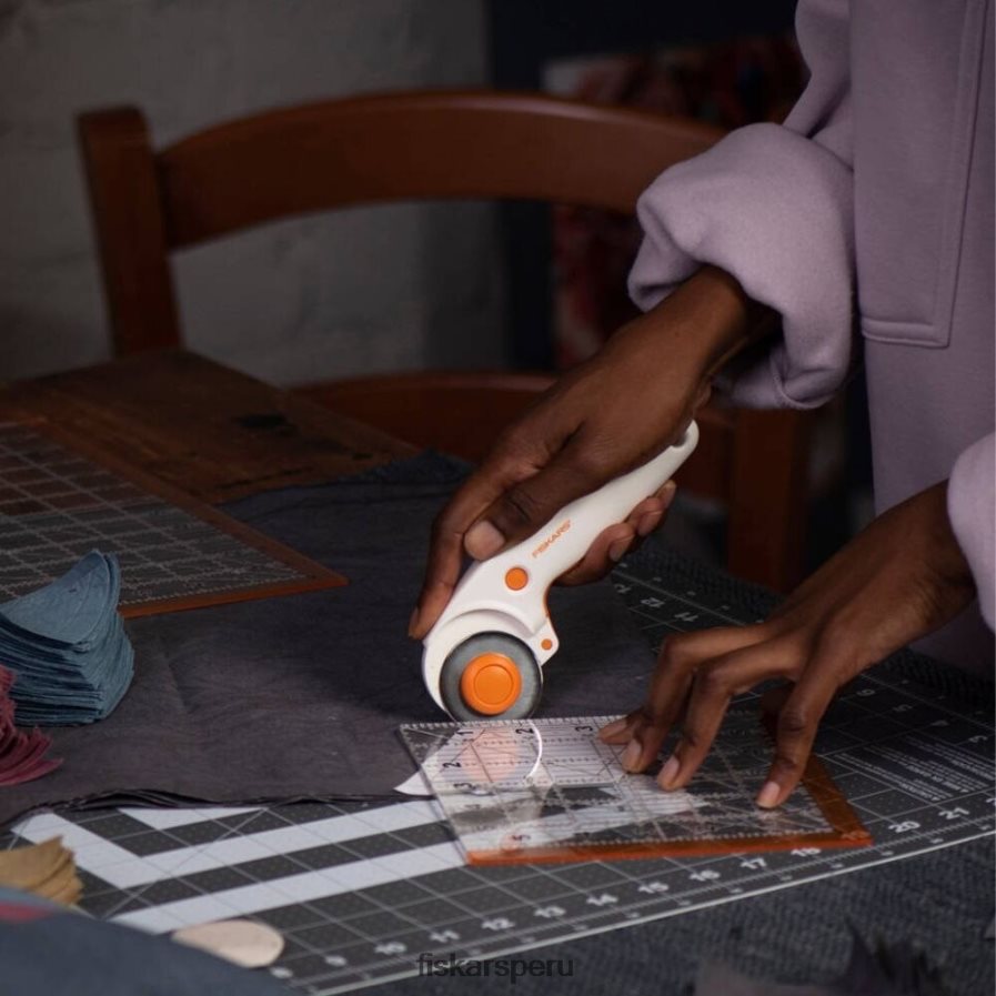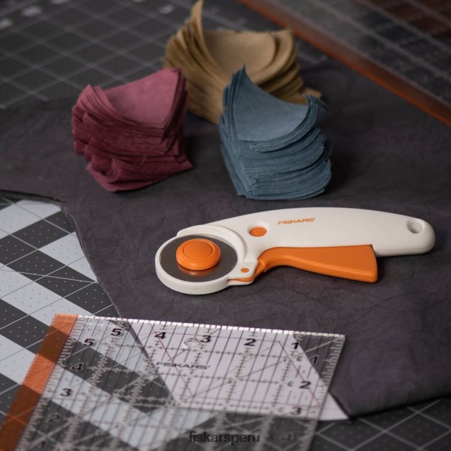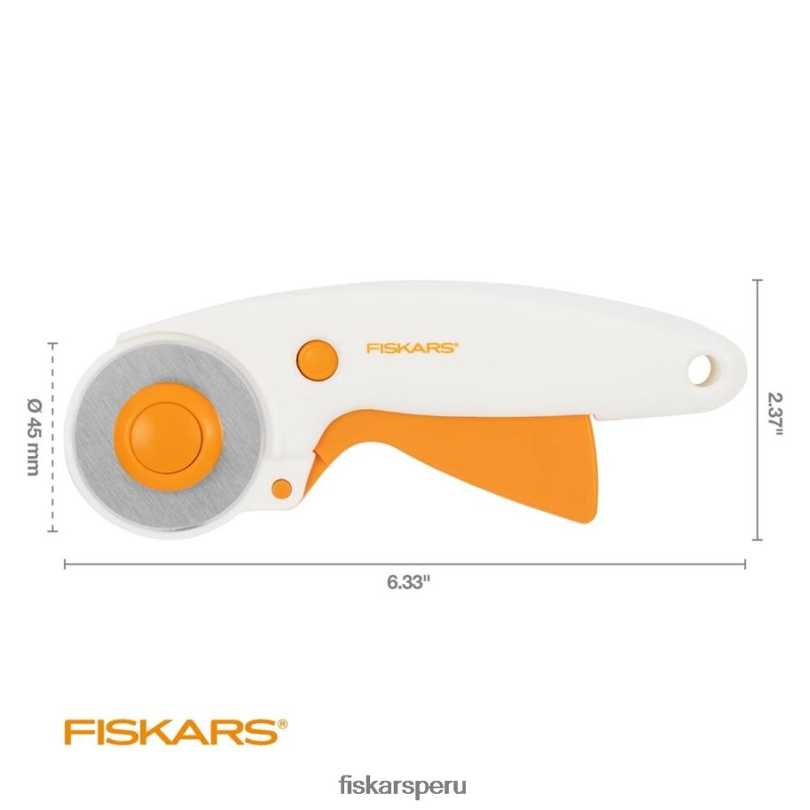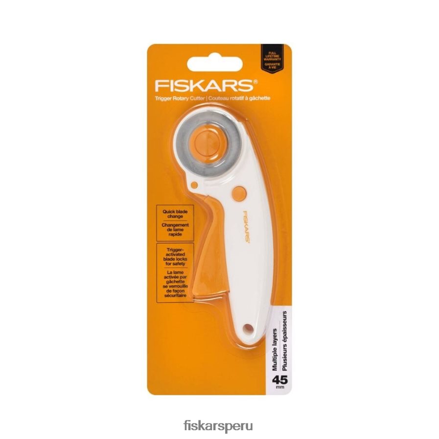 - El cortador giratorio con gatillo Fiskars de 45 mm es ideal para cortar varias capas. de tela, fieltro y vinilo, con una exposición de la hoja de 7 mm cuando está en uso