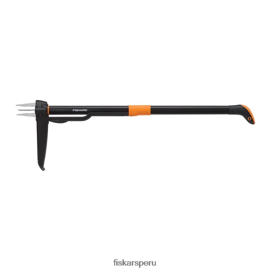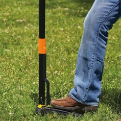 El desmalezador de pie de Fiskars facilita la eliminación permanente de plantas invasoras sin dolor en las rodillas al arrodillarse, dolor de espalda al agacharse o herbicidas químicos fuertes y costosos que deben aplicarse varias veces. simplemente coloque la cabeza sobre la maleza, baje sobre la plataforma reforzada para los pies y las cuatro garras dentadas de acero inoxidable agarrarán la maleza por la raíz para eliminarla limpiamente. una mano desplazada reduce la tensión en la muñeca, una ventana de visualización en el pedal permite colocar las garras sin errores y un mecanismo de fácil expulsión despeja la cabeza entre usos para una limpieza rápida y sencilla.