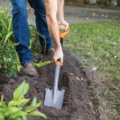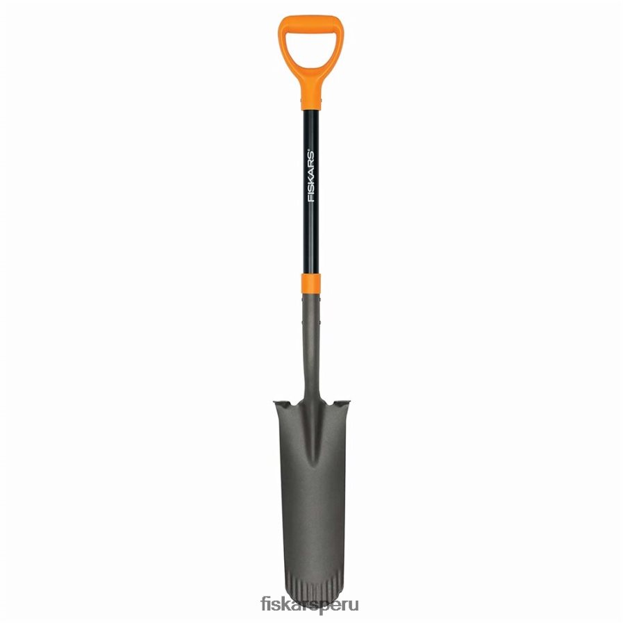- La pala de drenaje Fiskars de alta resistencia cuenta con una cabeza de acero de gran calibre y es ideal para cavar agujeros pequeños y profundos, hacer zanjas y otras necesidades de plantación