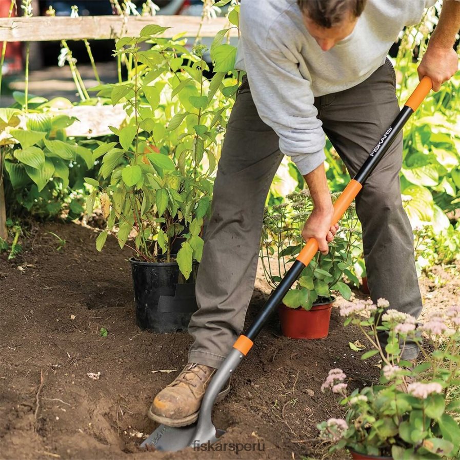 La pala de excavación y fiskars de alta resistencia cuenta con una cabeza de acero de gran calibre con conexiones remachadas que garantizan que la herramienta no se deshaga, lo que la hace ideal para excavar en suelos difíciles. un borde de acero afilado facilita la penetración en suelos difíciles. un mango de fibra de vidrio resistente y liviano cuenta con un agarre medio que proporciona múltiples posiciones de agarre para mayor comodidad y control. el acero con recubrimiento en polvo también ayuda a prevenir la oxidación.