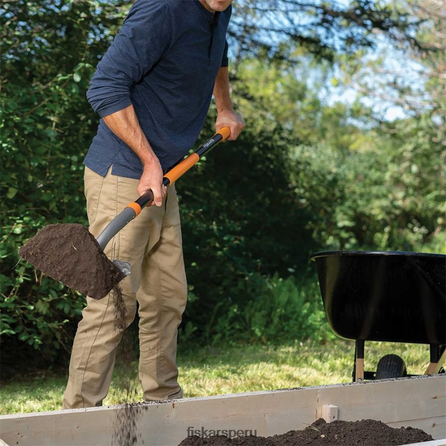 - la pala de transferencia y fiskars de alta resistencia cuenta con un cabezal de acero de gran calibre, ideal para mover y esparcir mantillo, grava y otros materiales de jardín