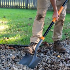 La pala Fiskars & Transfer presenta un diseño resistente que facilita mover y esparcir materiales de jardín como mantillo, abono o grava. un cabezal de acero de gran calibre con conexiones remachadas garantiza que la herramienta no se deshaga, mientras que un mango de fibra de vidrio resistente y liviano cuenta con un agarre medio que proporciona múltiples posiciones de agarre para mayor comodidad y control. el acero con recubrimiento en polvo también ayuda a prevenir la oxidación.
