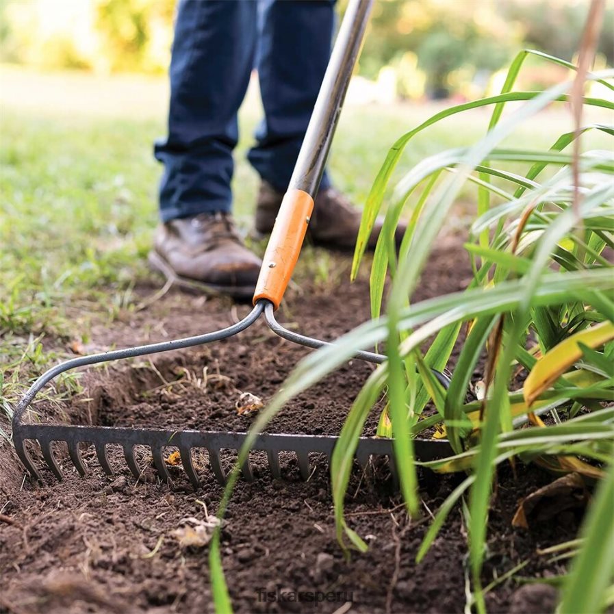 - El rastrillo de jardín fiskars cuenta con púas resistentes que lo hacen ideal para aflojar o nivelar la tierra, así como para eliminar la hierba muerta del césped li>