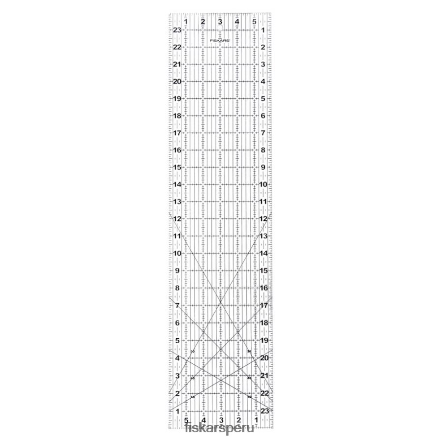 - La regla de 6″ x 24″ se pliega a 6″ x 8″ para facilitar el almacenamiento y el viaje