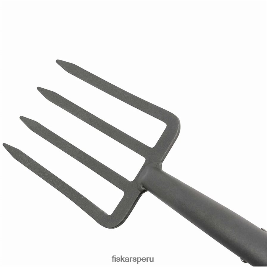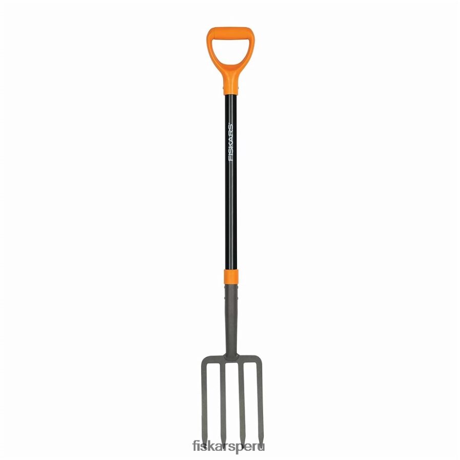 La duradera horquilla Fiskars cuenta con una construcción de acero forjado y es ideal para girar, aflojar y levantar materiales sueltos como tierra, abono, mantillo y más. el mango liviano de fibra de vidrio ofrece resistencia, mientras que el diseño del mango en D mantiene la muñeca en una posición neutral para reducir la tensión, mejorando la comodidad y el control. el acero con recubrimiento en polvo también ayuda a prevenir la oxidación.