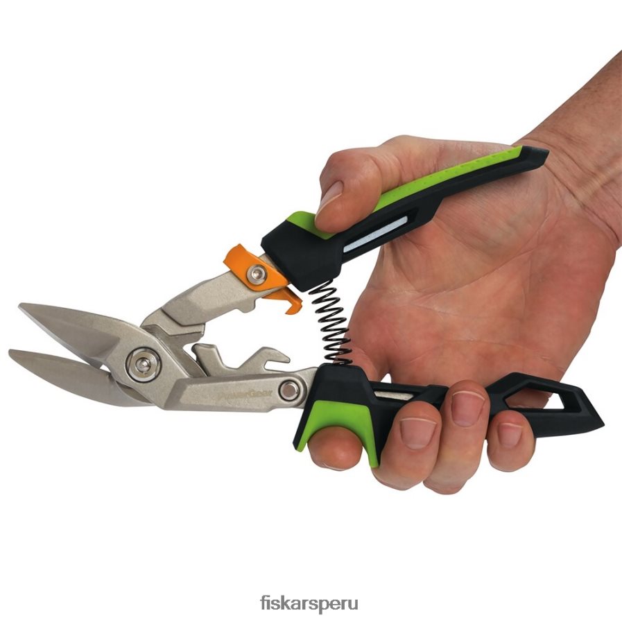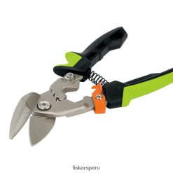 Experimente la mecánica y la ergonomía avanzadas con una nueva generación de tijeras de aviación que brindan más fuerza, comodidad y control. powergear & technology te brinda más de un 40% más de potencia, especialmente durante la parte más difícil del corte. Esta ingeniosa tecnología también ayuda a utilizar más fuerza al evitar la sobreextensión sin sacrificar la longitud del corte. un mango ergonómico asistido por resorte ayuda a reducir la fatiga de la mano y presenta un agarre suave para mejorar la destreza y la comodidad. Además, un diseño desplazado le permite cortar por el centro y mantiene la mano alejada de los materiales que está cortando. Las hojas de acero forjado y tratado térmicamente y el mango forjado mejoran la resistencia y la durabilidad. las tijeras se pueden bloquear desde arriba o desde el costado y cortar hasta acero laminado en frío calibre 18 o acero inoxidable calibre 22 con una longitud de corte de 1 1/2″.