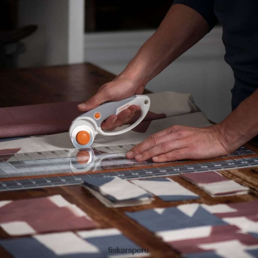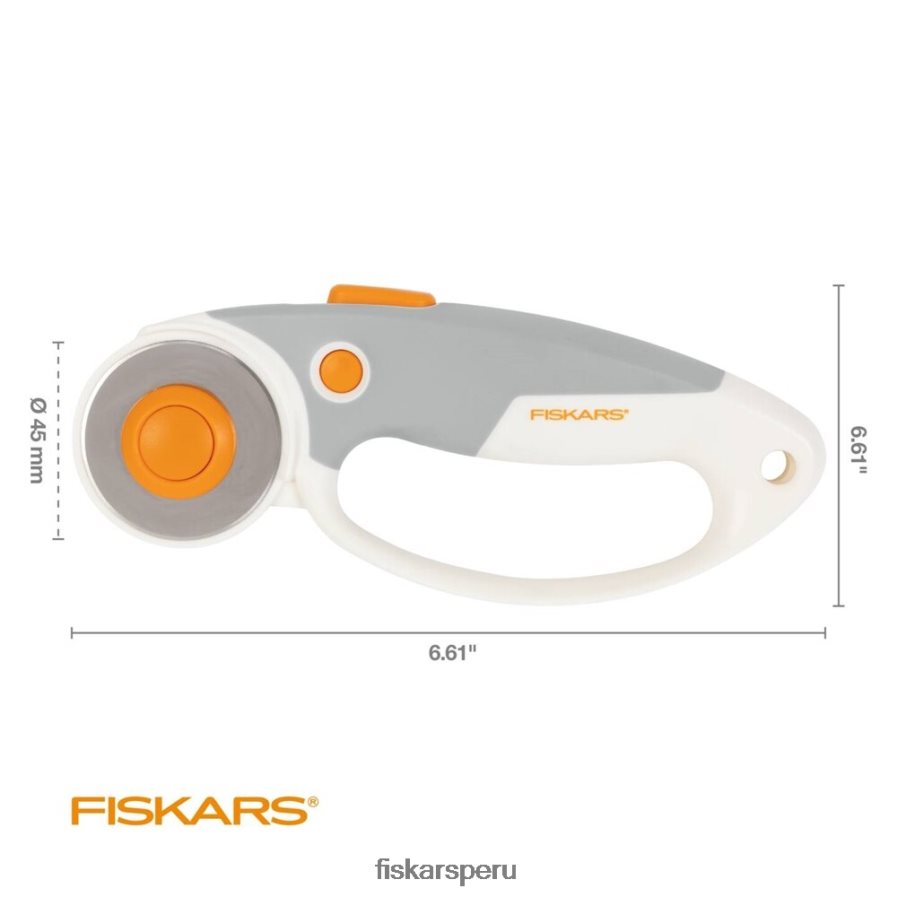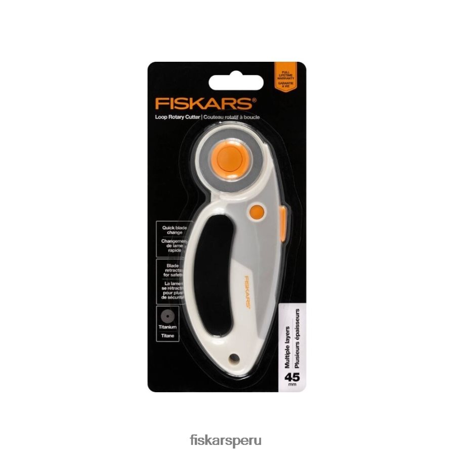 - El cortador giratorio de bucle de titanio de Fiskars (45 mm) es ideal para cortar múltiples capas de tela, fieltro y vinilo, con una exposición de la hoja de 7 mm cuando está en uso