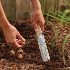 la hoja cóncava presenta una punta afilada con precisión y es tanto afilada como dentada. bordes. Estas características lo hacen ideal para excavar en suelos duros, dividir plantas y cortar raíces rebeldes, revestimientos y bolsas de tierra. la hoja de 7″ presenta gradaciones claramente marcadas, por lo que plantar semillas y bulbos a la profundidad perfecta es muy fácil. Nuestro mango de madera duradero proporciona un agarre seguro mientras que la espiga completa de acero inoxidable resiste la oxidación, la flexión y la rotura.