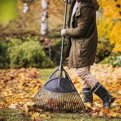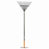 - el rastrillo de hojas fiskars cuenta con púas duraderas y un mango de aluminio liviano para rastrillar y mover las hojas de forma rápida y sencilla