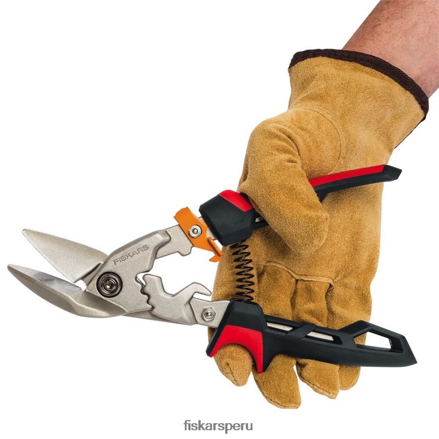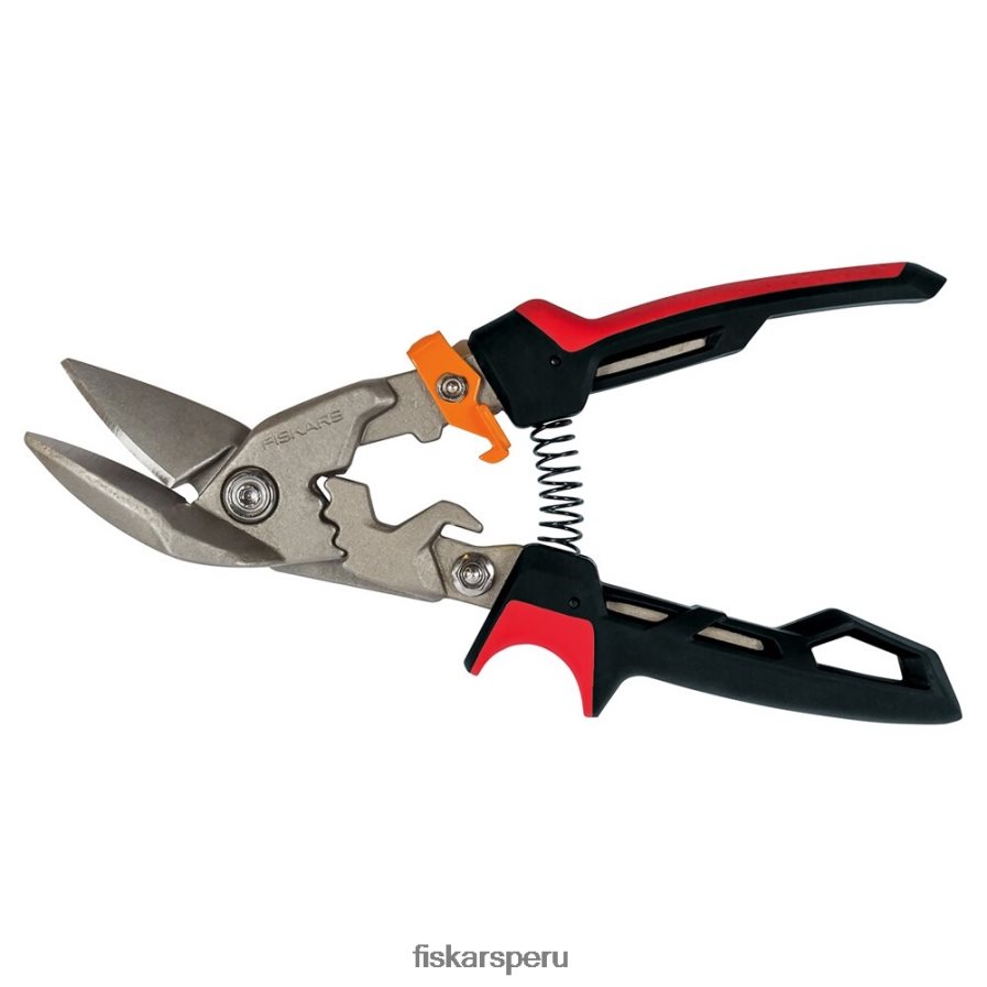 Experimente la mecánica y la ergonomía avanzadas con una nueva generación de tijeras de aviación que brindan más fuerza, comodidad y control. powergear & technology te brinda más de un 40% más de potencia, especialmente durante la parte más difícil del corte. Esta ingeniosa tecnología también ayuda a utilizar más fuerza al evitar la sobreextensión sin sacrificar la longitud del corte. un mango ergonómico asistido por resorte ayuda a reducir la fatiga de la mano y presenta un agarre suave para mejorar la destreza y la comodidad. Además, un diseño desplazado le permite cortar por el centro y mantiene la mano alejada de los materiales que está cortando. Las hojas de acero forjado y tratado térmicamente y el mango forjado mejoran la resistencia y la durabilidad. las tijeras se pueden bloquear desde arriba o desde el costado y cortar hasta acero laminado en frío calibre 18 o acero inoxidable calibre 22 con una longitud de corte de 1 1/2″.