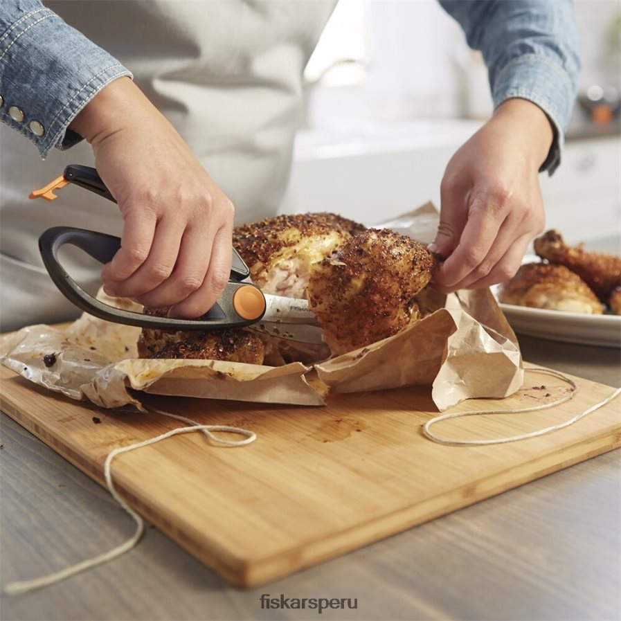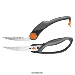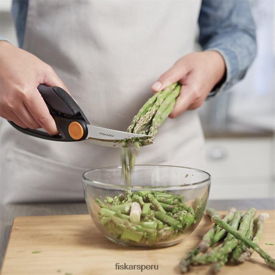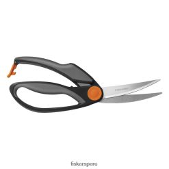 descubra un par de tijeras de cocina que son en parte cuchillo de carnicero y en parte cuchillo de chef. Las hojas resistentes y el mango duradero le brindan la potencia para cortar carne gruesa, aves, pescado e incluso huesos, mientras que una forma curva y cónica le brinda la precisión para recortar en espacios reducidos. Las hojas de acero inoxidable incluyen dientes para agarrar materiales resbaladizos y una muesca eléctrica para facilitar el corte de hueso. un diseño de acción de resorte hace que cada corte sea suave, mientras que los puntos de contacto de agarre suave mejoran la comodidad y el control. Cuando haya terminado de cortar, simplemente desmonte las cuchillas y métalas en el lavavajillas para una limpieza rápida y profunda. usecare