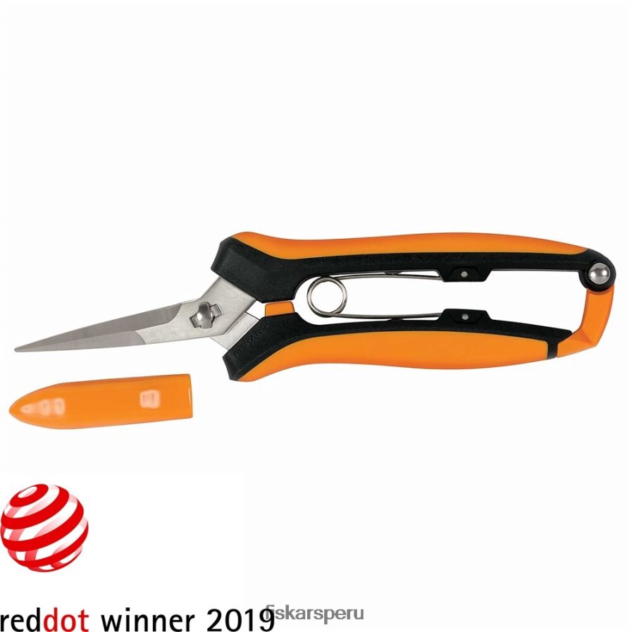 ganador del premio red dot best of the best 2019. Las hojas curvas de fiskars y las tijeras de podar y con micropunta curva mejoran el alcance y la precisión, lo que las hace ideales para recortar, dar forma y cortar intrincados: tareas esenciales para fomentar un crecimiento saludable en plantas. Las cuchillas y micropuntas precisas cortan hasta la punta para cortes limpios y saludables en espacios reducidos, mientras que las cuchillas de acero inoxidable totalmente endurecidas con un borde rectificado con precisión se mantienen afiladas, incluso con un uso intensivo. un diseño simple y desmontable facilita la limpieza y eliminación de suciedad, residuos y resina pegajosa, mientras que un resorte y un parachoques integrados mantienen la herramienta intacta y no se caerá ni se perderá durante la limpieza, el transporte o el almacenamiento. un resorte de acción fácil(tm) abre suavemente las hojas después de cada corte para ayudar a reducir la fatiga, mientras que el agarre suave y los puntos de contacto en el mango mejoran la comodidad y el control. Además, un cierre fácil de apretar y liberar y una funda protegen las hojas durante el transporte y el almacenamiento.